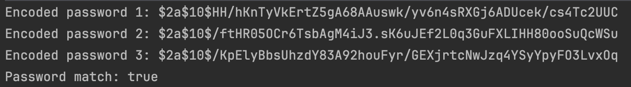 System.out.println("Encoded password " + (i + 1) + ": " + encodedPassword);