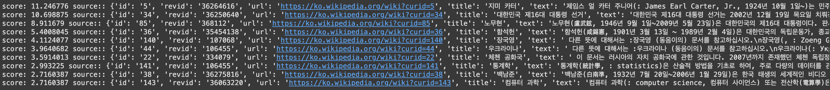 # 다운로드 받은 샘플 위키 데이터를 전처리하여 검색의 입력으로 사용