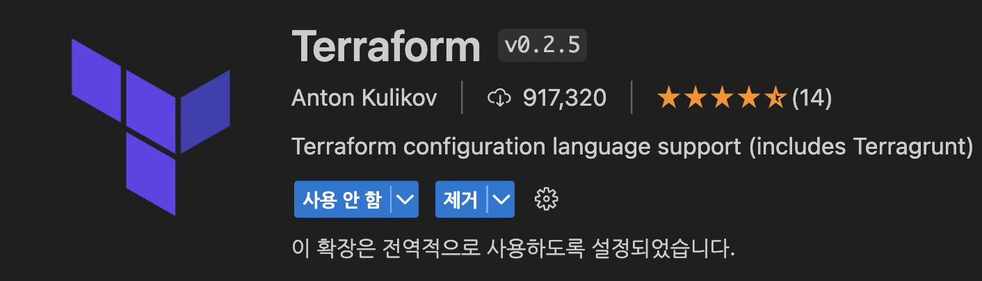 💡 vsCode에는 테라폼 코드를 작성하기 적합한 플러그인이 있다. 나는 Terraform 플러그인과 HashiCorp Terraform 플러그인을 설치해서 테라폼 코드를 작성했다.