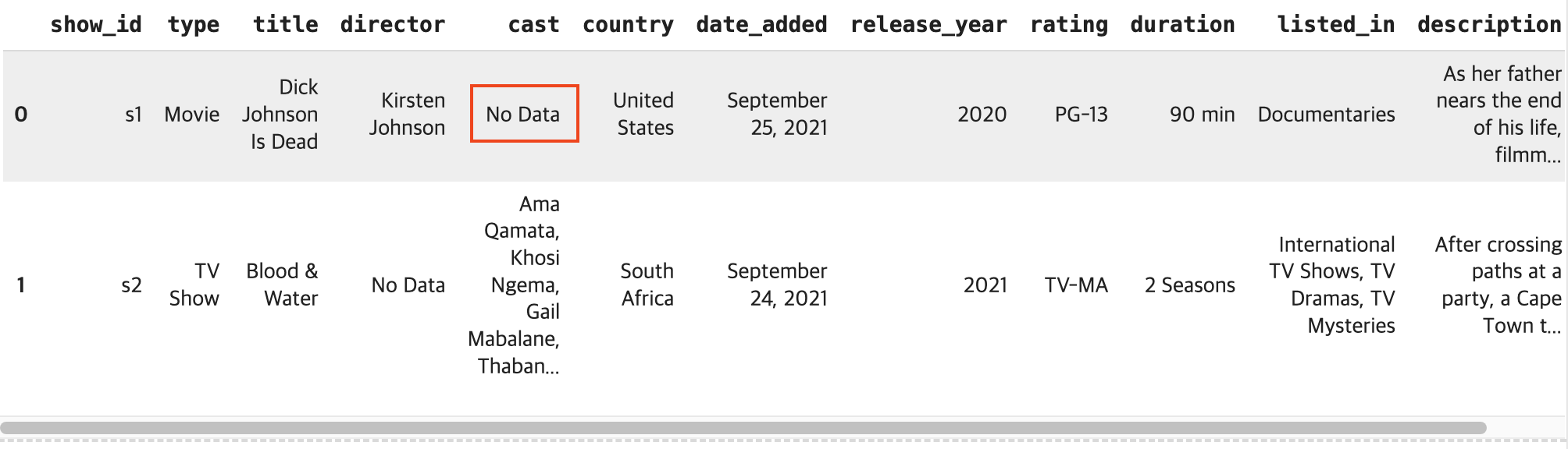 위에서 replace로 바꿔준 No Data도 확인할 수 있다.