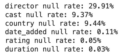missingValueRate = netflix[column].isna().sum() / len(netflix) * 100