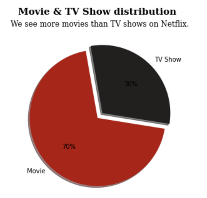 pie plot 통해 Movies & TV shows 각각 비율 시각화