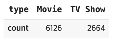 ratio = pd.DataFrame(netflix['type'].value_counts()).T