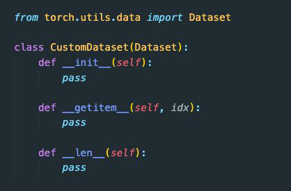 Custom dataset 구현을 위해서는 Dataset 클래스를 상속하여 custom dataset