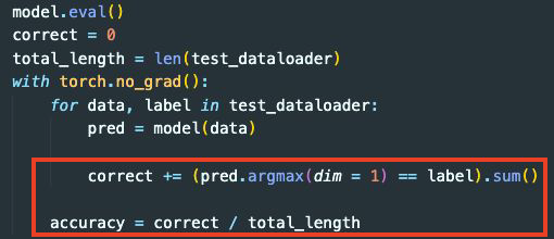 - model.eval(): 모델을 evaluation 모드로 전환한다. 이는 모델의 특정 레이어들(dropout, batchnorm는 학습에 더 용이하게 하기 위함)이 학습 과정과 추론 과정에서 다르게 작동해야 하기 때문이다.