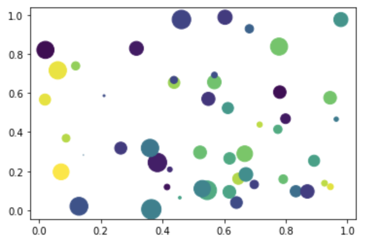 - scatter() 함수의 size 파라미터 값으로 마커의 크기 설정