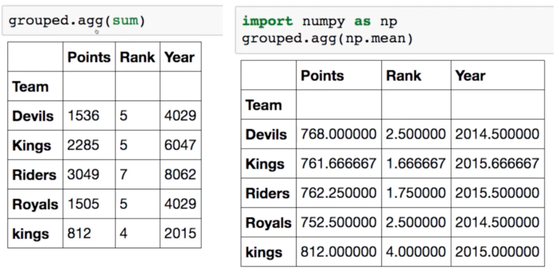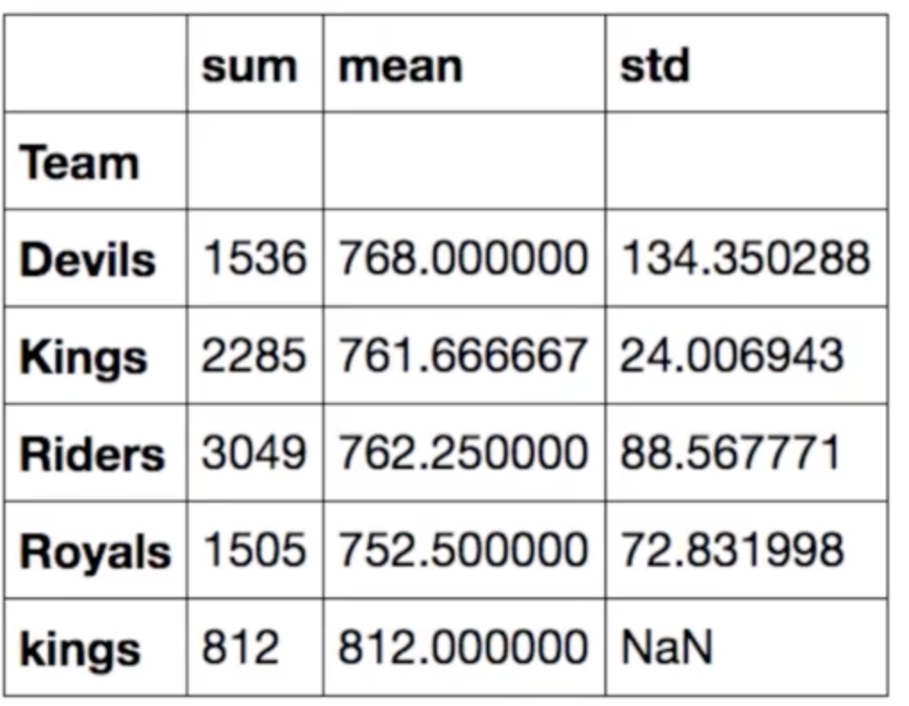 grouped['Points'].agg([[np.sum, np.mean, np.std]])