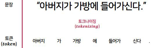 그래서 형태소 단위의 토큰화가 필요하다.